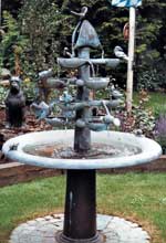 Juramarmorbrunnen mit Zinn- und Bronzefiguren 120 x 120 x 120 cm, mit unterirdischem Wasserkreislauf